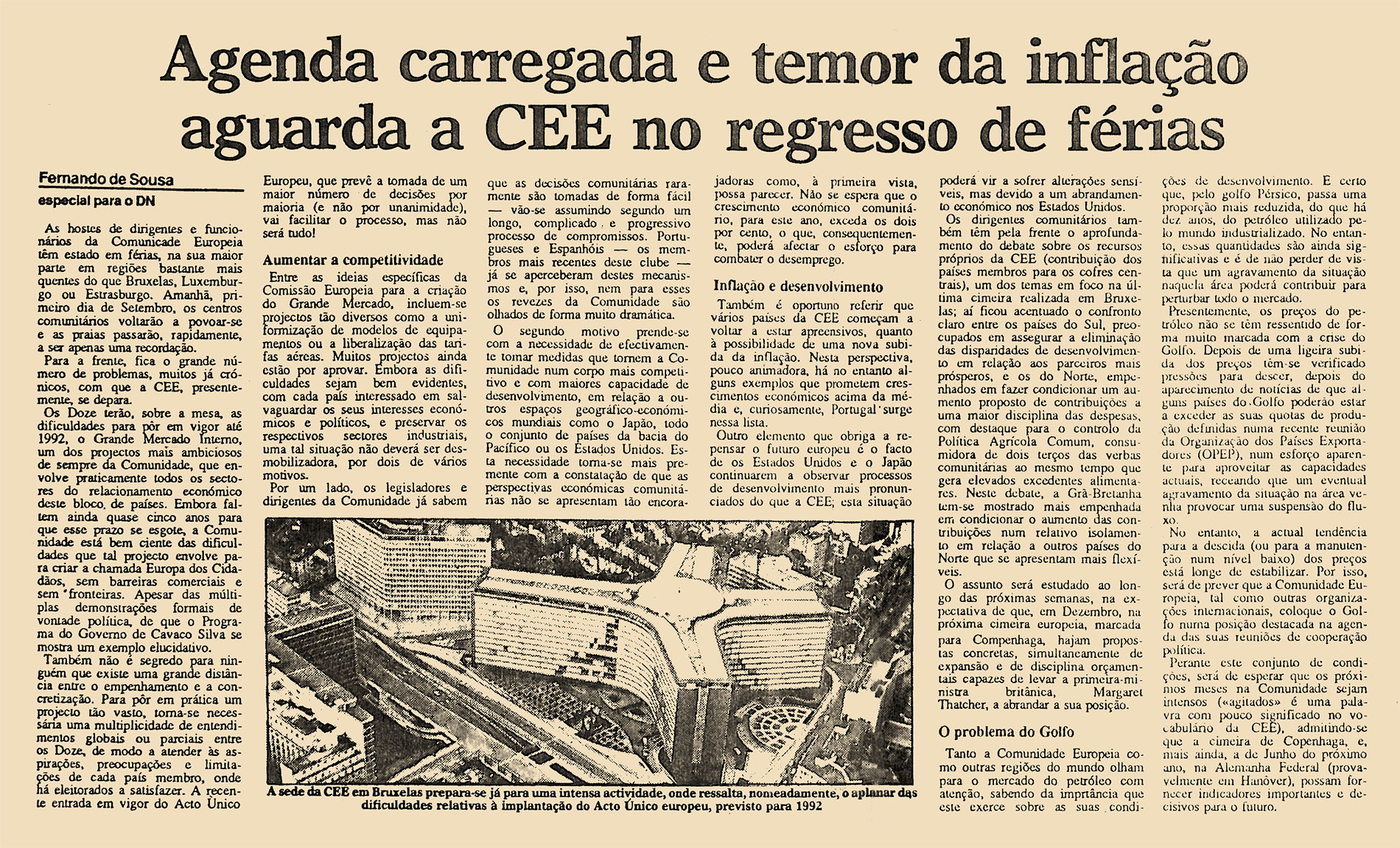 As hostes de dirigentes e funcionários da Comunidade Europeia têm estado em férias, na sua maior parte em regiões bastante mais quentes do que Bruxelas, Luxemburgo ou Estrasburgo. Amanhã, primeiro dia de Setembro, os centros comunitários voltarão a povoar-se e as praias passarão, rapidamente, a ser apenas uma recordação.