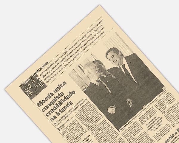 A futura moeda única europeia (euro) ganhou ontem maior credibilidade com a aprovação do Pacto de Estabilidade e Crescimento, que garante a disciplina orçamental dos países que nela participam. Esta aprovação verificou-se durante a cimeira europeia que decorre até hoje em Dublin. A delegação portuguesa é chefiada pelo primeiro-ministro, António Guterres.