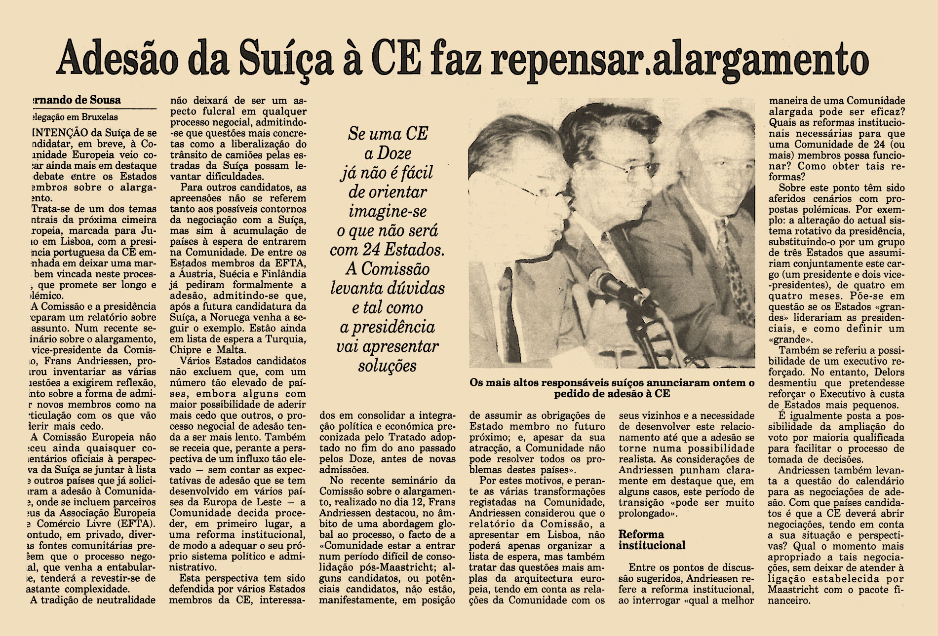 A intenção da Suíça de se candidatar, em breve, à Comunidade Europeia veio colocar ainda mais em destaque o debate entre os Estados membros sobre o alargamento.