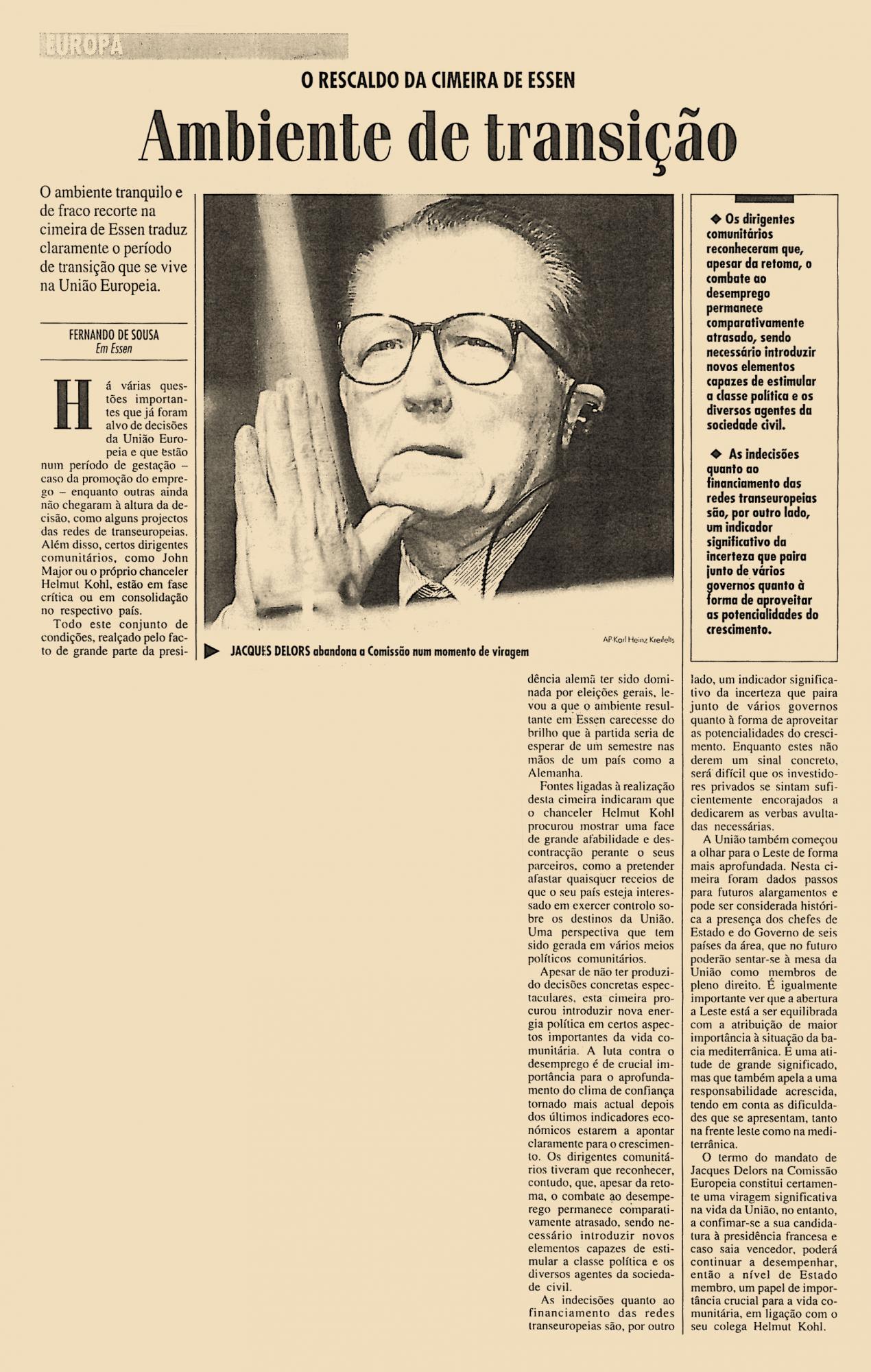 O ambiente tranquilo e de fraco recorte na cimeira de Essen traduz claramente o período de transição que se vive na União Europeia.