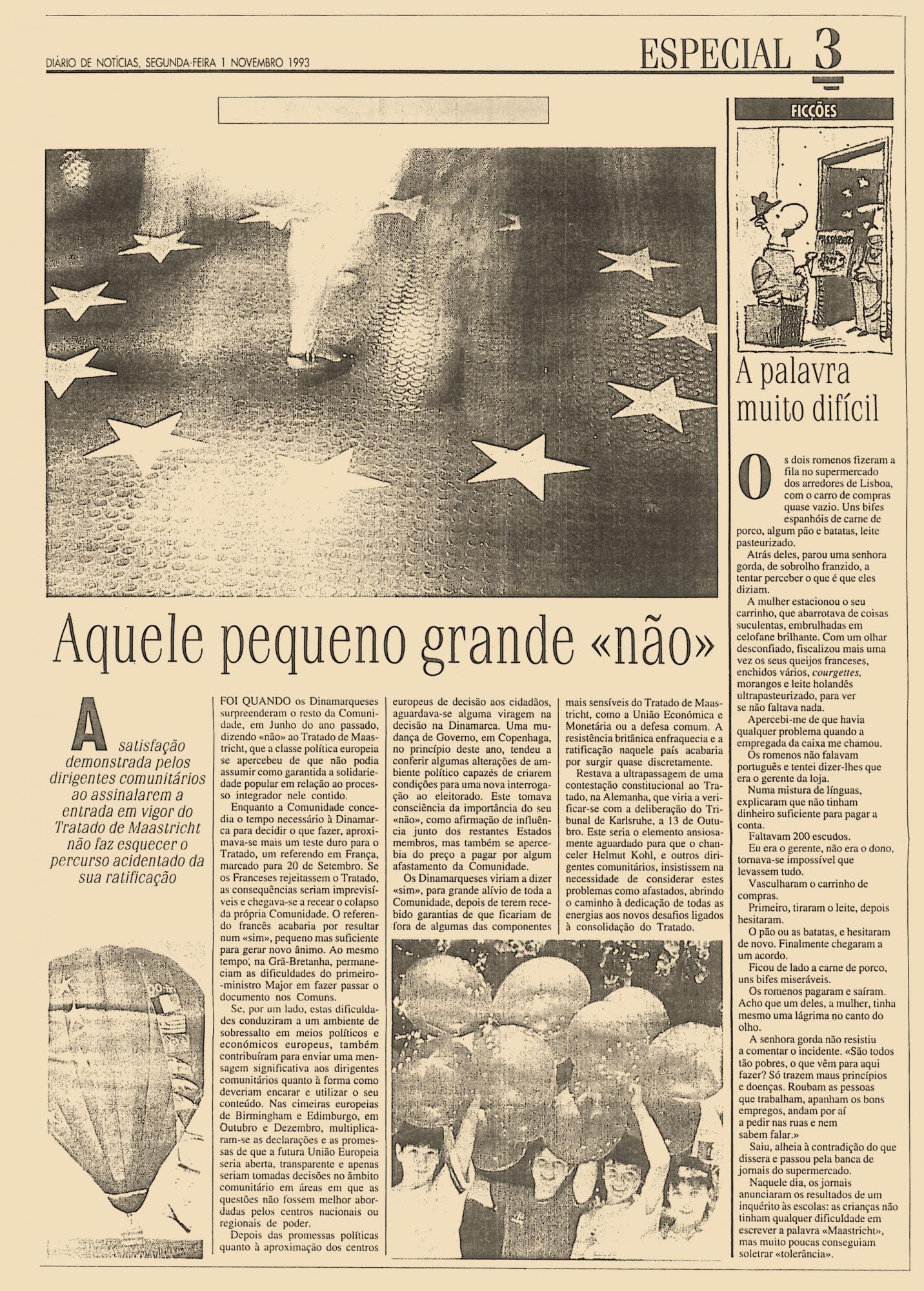 A satisfação demonstrada pelos dirigentes comunitários as assinalarem a entrada em vigo do Tratado de Maastricht não faz esquecer o percurso acidentado da sua ratificação,