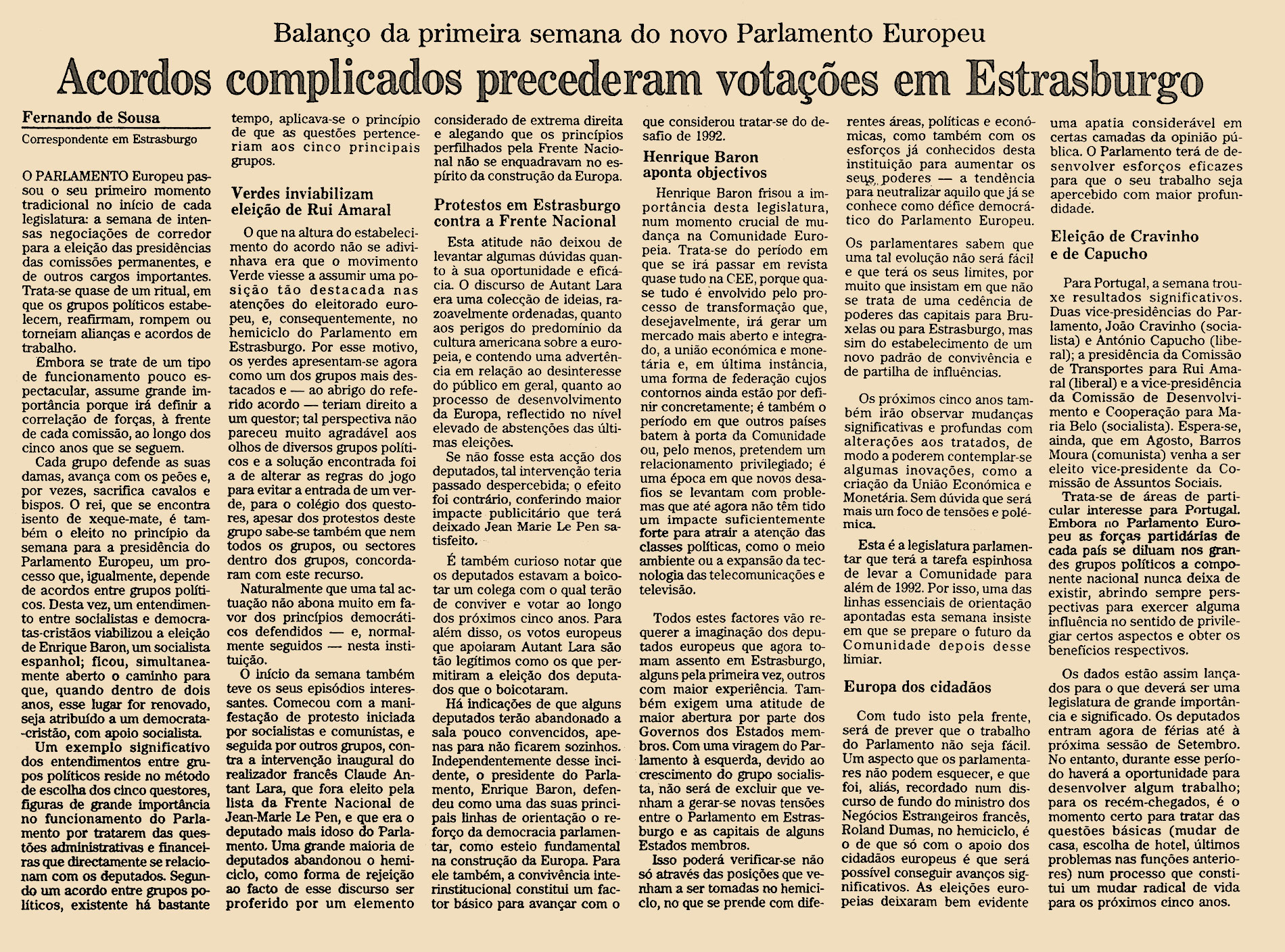 O Parlamento Europeu passou o seu primeiro momento tradicional no início de cada legislatura: a semana de intensas negociações de corredor para a eleição das presidências das comissões permanentes, e de outros cargos importantes. Trata-se quase de um ritual, em que os grupos políticos estabelecem, reafirmam, rompem ou torneiam alianças e acordos de trabalho.