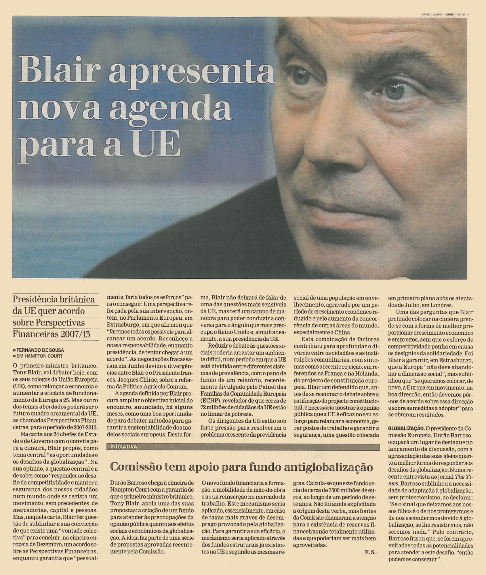 Blair apresenta nova agenda para a EU