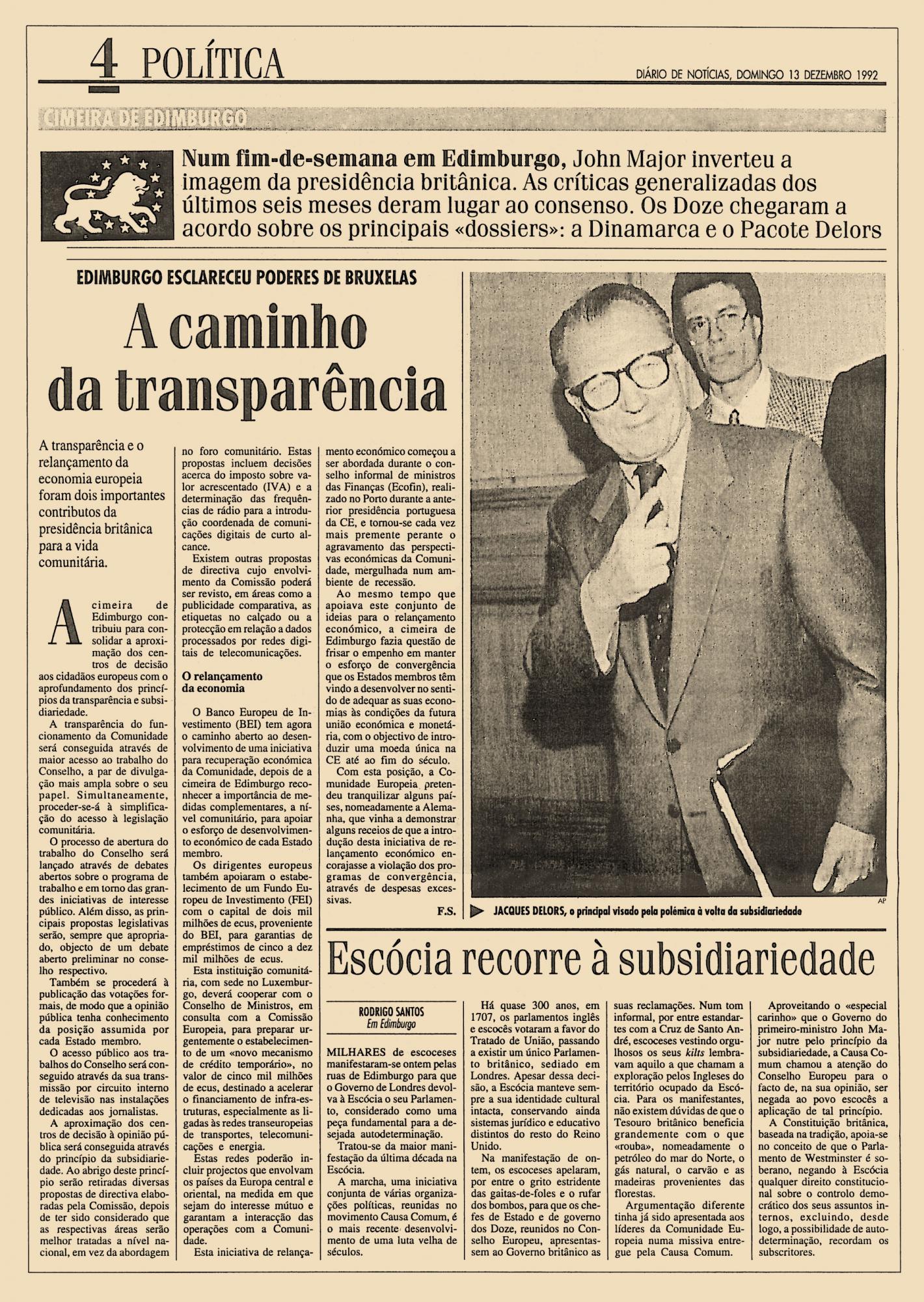 Num fim-de-semana em Edimburgo, John Major inverteu a imagem da presidência britânica. As críticas generalizadas dos últimos seis meses deram lugar ao consenso. Os Doze chegaram a acordo sobre os principais “dossiers”: a Dinamarca e o Pacote Delors.