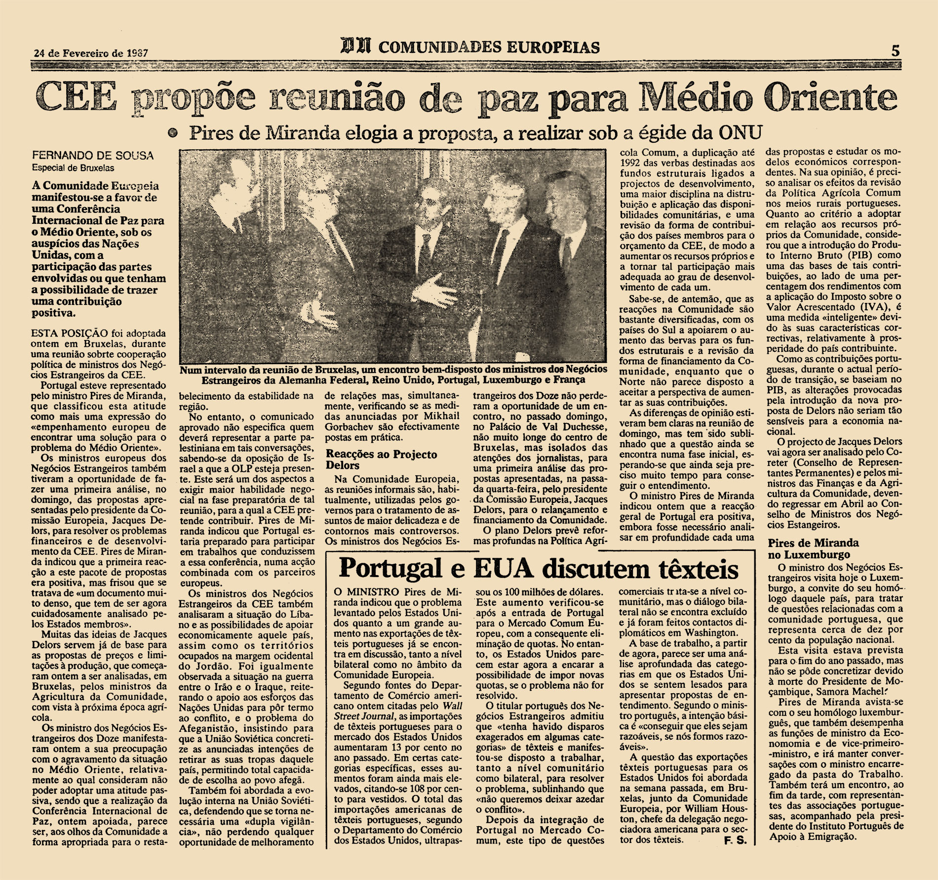 A Comunidade Europeia manifestou-se a favor de uma Conferência Internacional de Paz para o Médio Oriente, sob os auspícios das Nações Unidas, com a participação das partes envolvidas ou que tenham a possibilidade de trazer uma contribuição positiva.