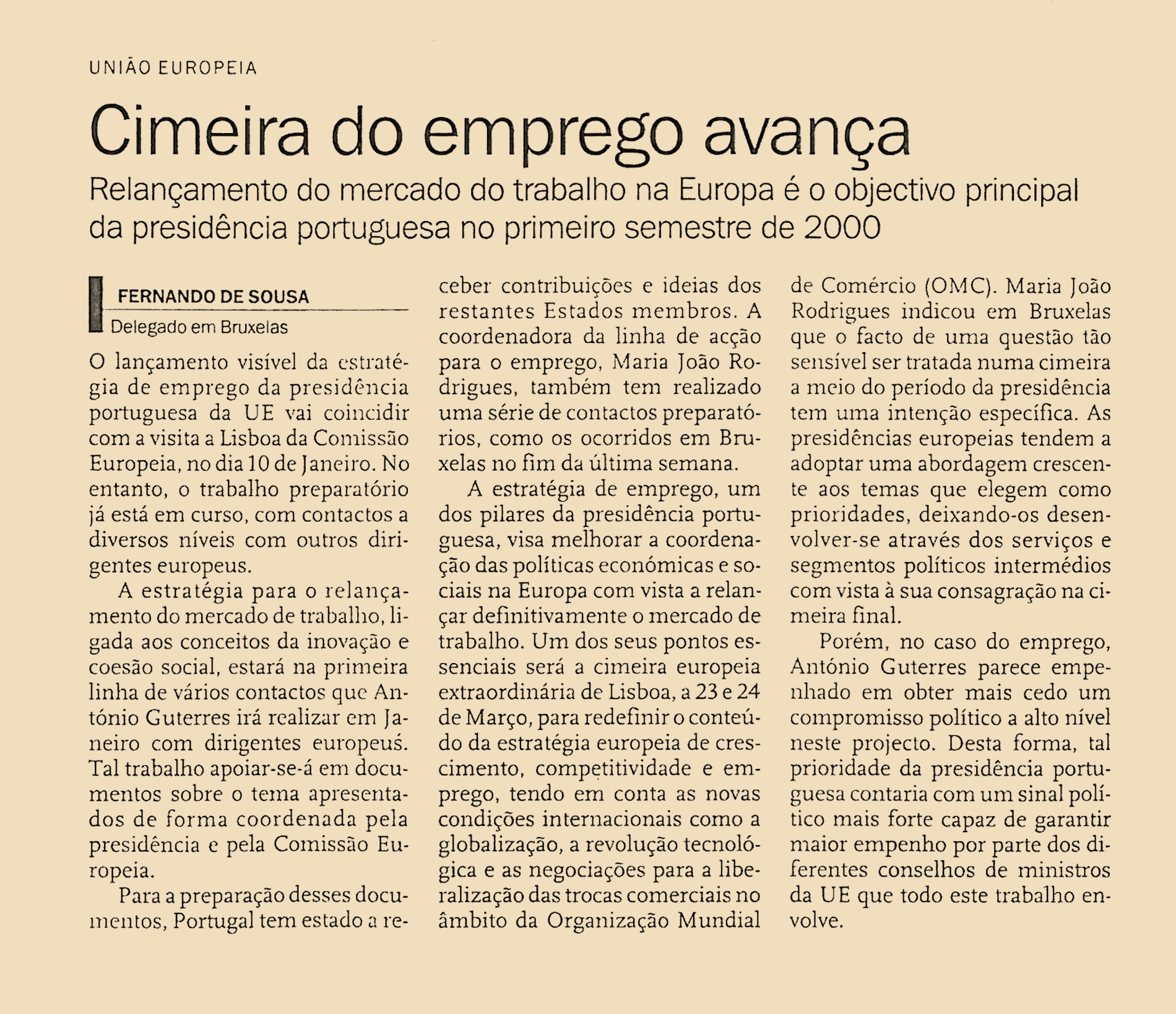 O lançamento visível da estratégia de emprego da presidência portuguesa da EU vai coincidir com a visita a Lisboa da Comissão Europeia, o dia 10 de Janeiro. No entanto, o trabalho preparatório já está em curso, com contactos a diversos níveis com outros dirigentes europeus.