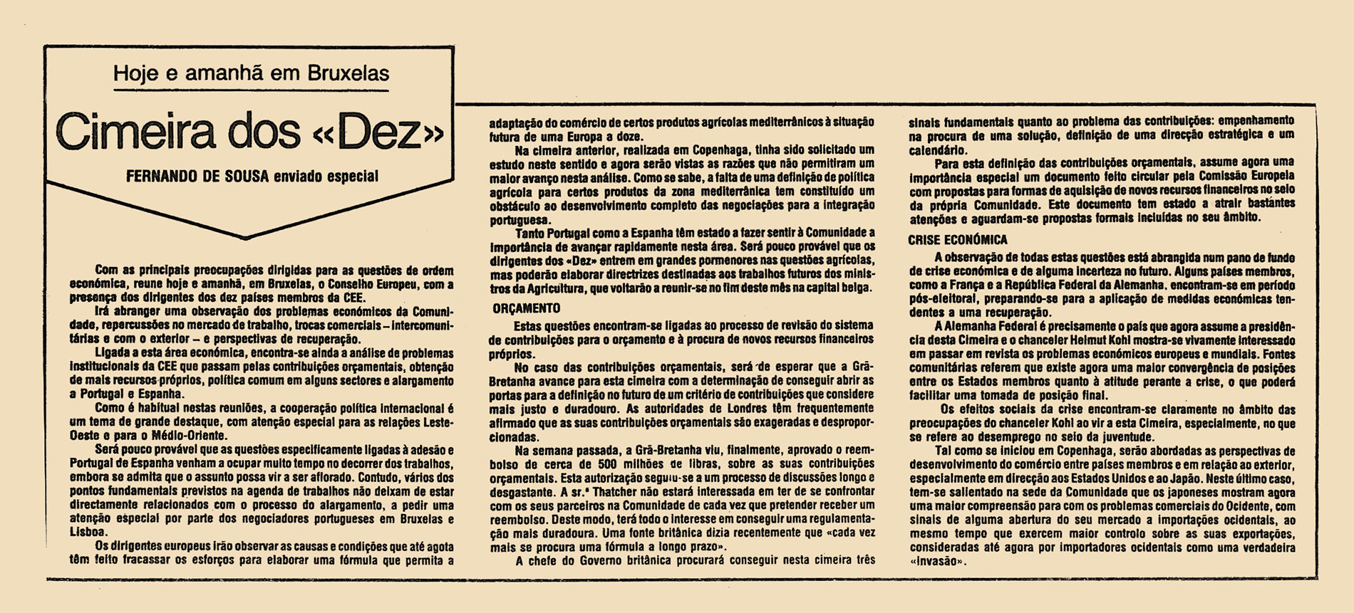Com as principais preocupações dirigidas para as questões de ordem económica, reúne hoje e amanhã, em Bruxelas, o Conselho Europeu, com a presença dos dirigentes dos dez países membros da CEE.