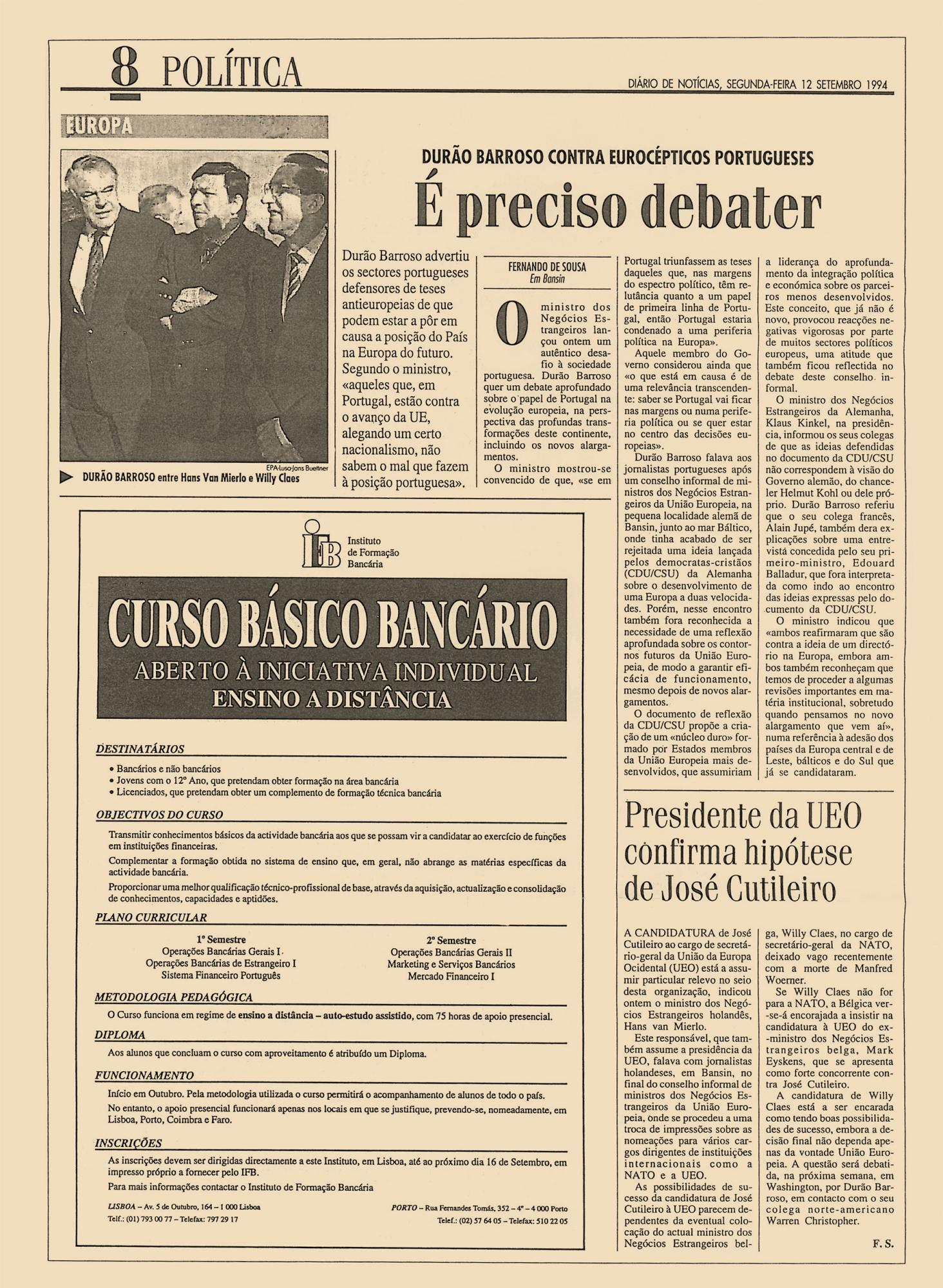 Durão Barroso advertiu os sectores portugueses defensores de teses antieuropeias de que podem estar a pôr em causa a posição do País na Europa do futuro. Segundo o ministro, “aqueles que, em Portugal, estão contra o avanço da EU, alegando um certo nacionalismo, não sabem o mal que fazem à posição portuguesa”.