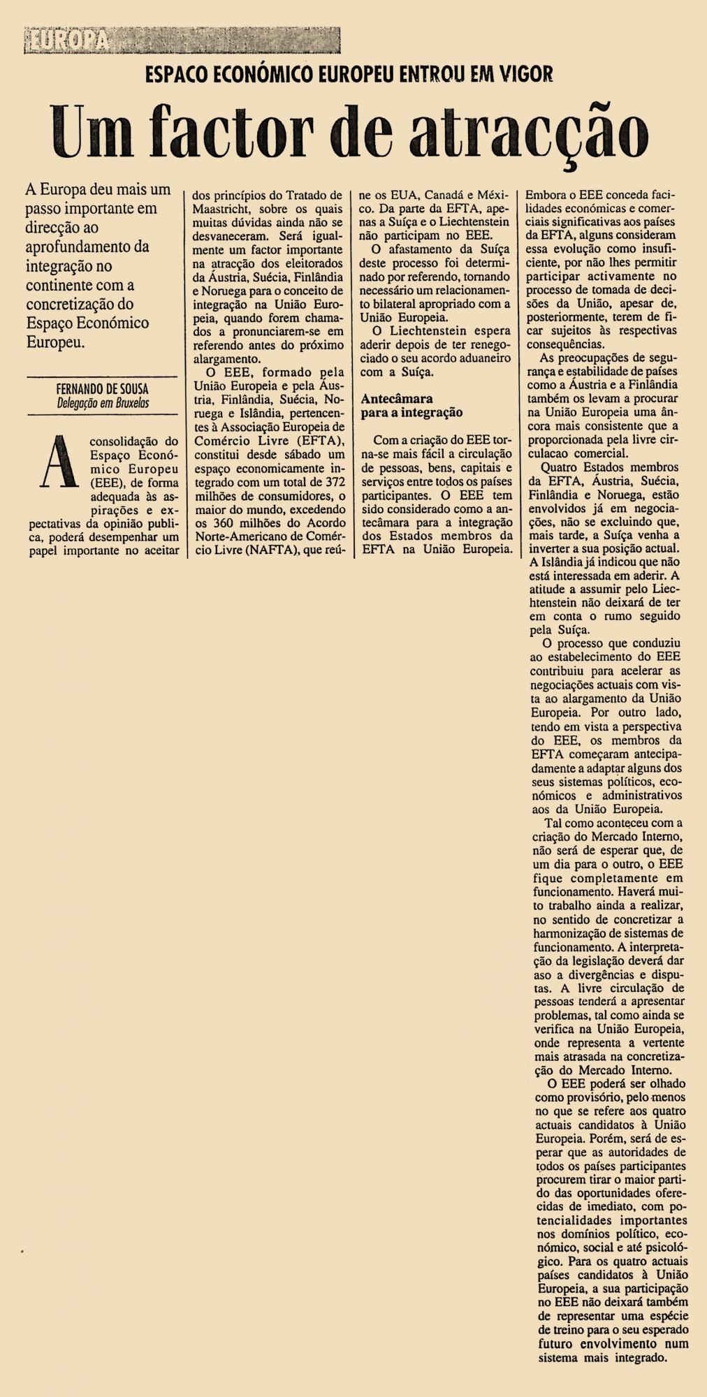 Espaço Económico Europeu entrou em vigor: Um factor de atracção