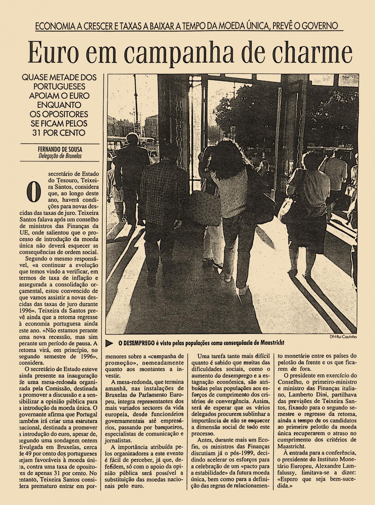 Quase metade dos portugueses apoiam o Euro enquanto os opositores se ficam pelos 31 por cento.