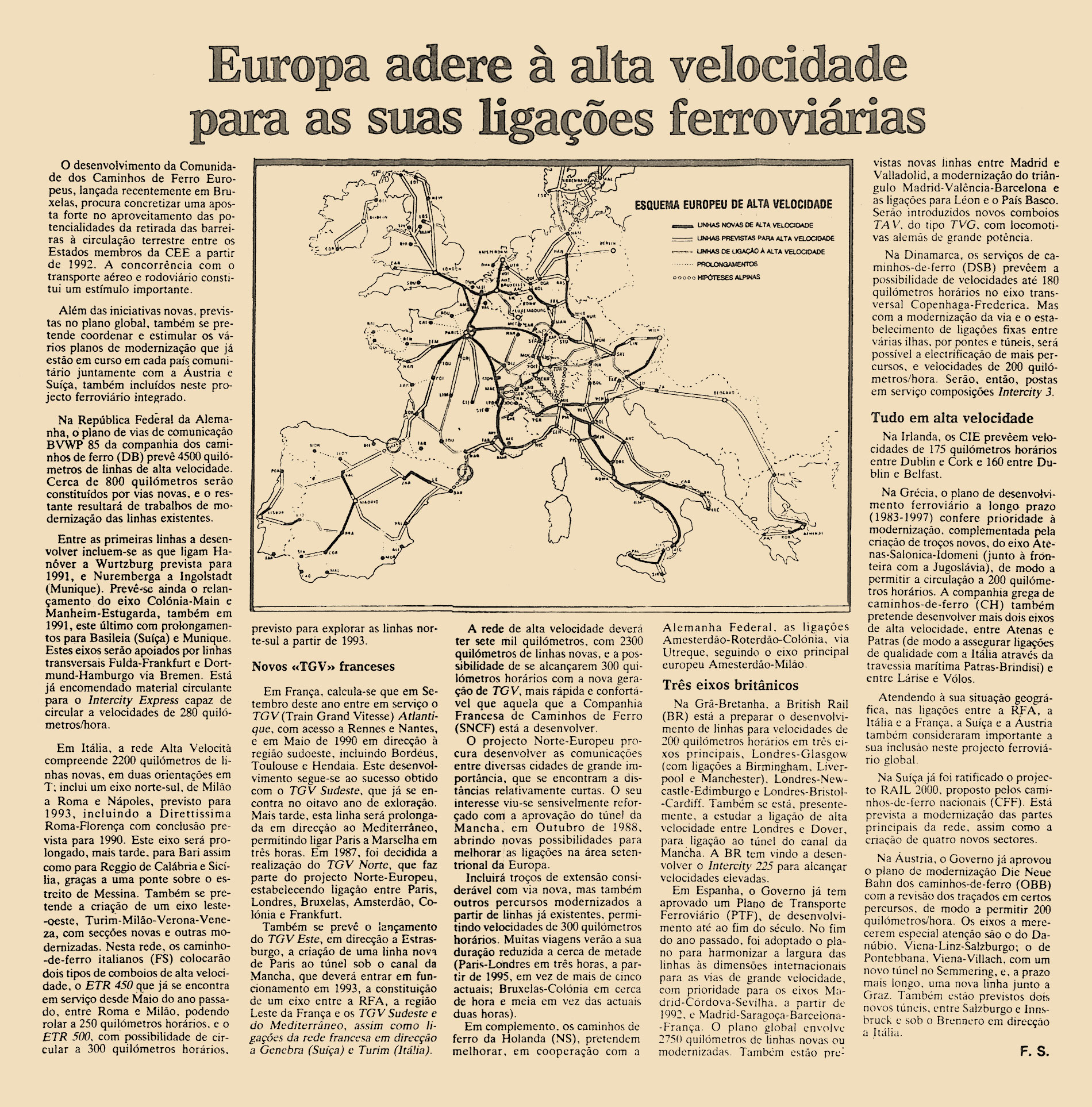 O desenvolvimento da Comunidade dos Caminhos de Ferro Europeus, lançada recentemente em Bruxelas, procura concretizar uma aposta forte no aproveitamento das potencialidades da retirada das barreiras à circulação terrestre entre os Estados membros da CEE a partir de 1992. A concorrência com o transporte aéreo e rodoviário constitui um estímulo importante.