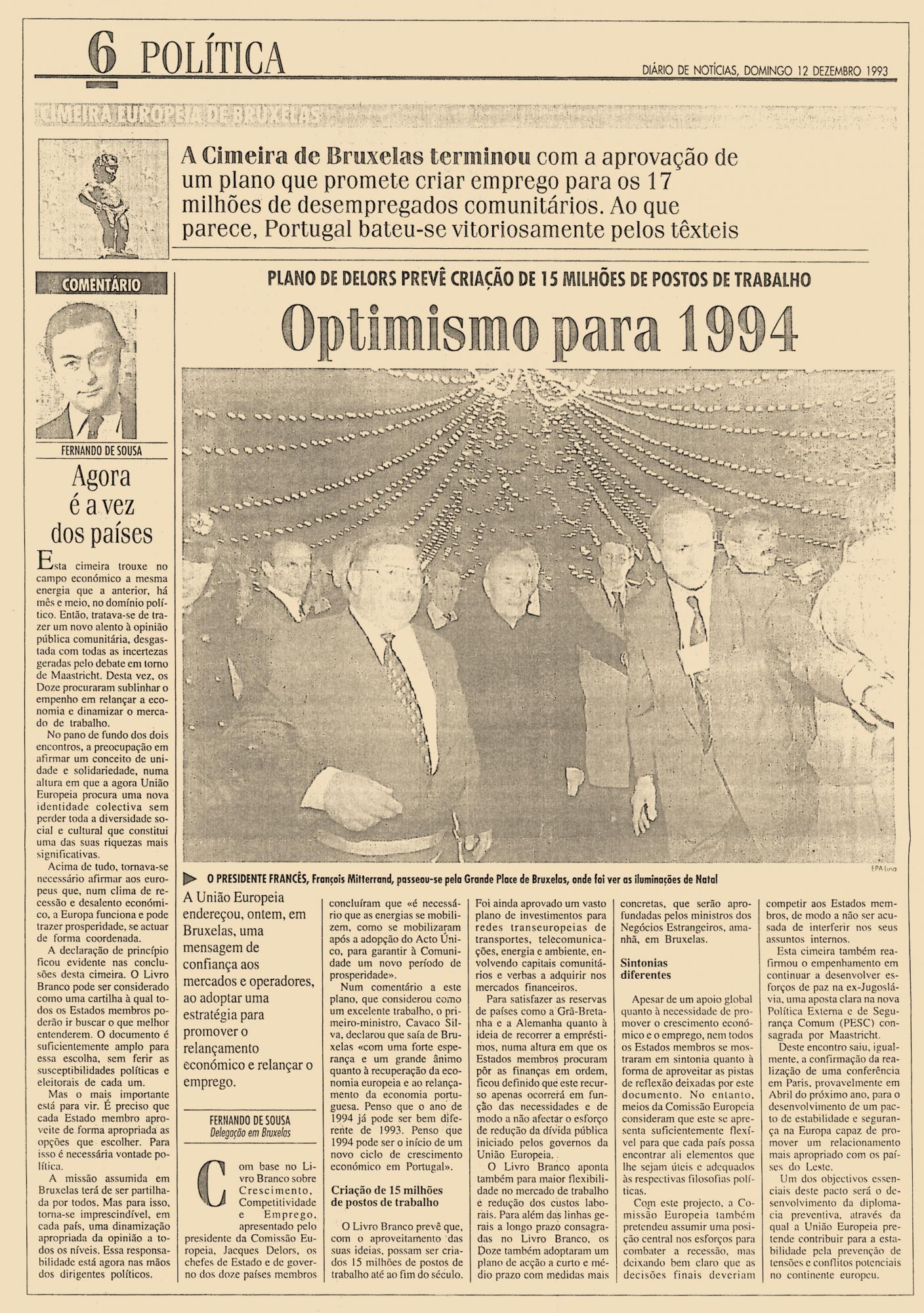 Esta cimeira trouxe no campo económico a mesma energia que a anterior, há mês e meio, no domínio político. Então, tratava-se de trazer um novo alento à opnião pública comunitária, desgastada com todas as incertezas geradas pelo debate em torno de Maastricht. Desta vez, os Doze procuraram sublinhar o empenho em relançar a economia e dinamizar o mercado de trabalho.