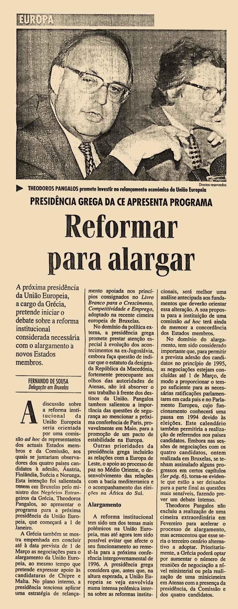 A próxima presidência da União Europeia, a cargo da Grécia, pretende iniciar o debate sobre a reforma institucional considerada necessária com o alargamento a novos Estados membros.