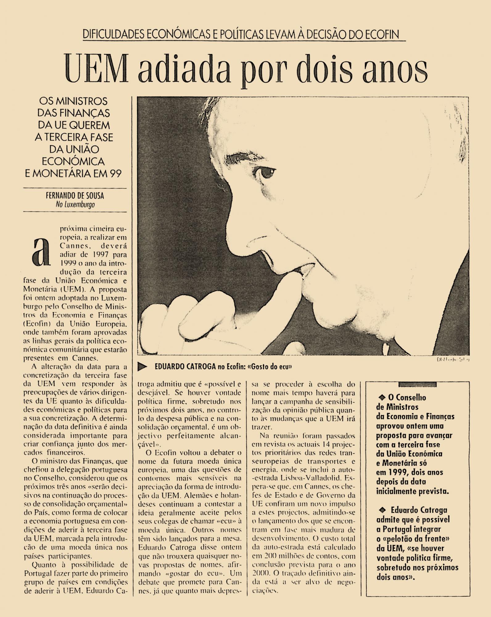 Os ministros das Finanças da EU wuerem a terceira fase da União Económica e Monetária em 99.