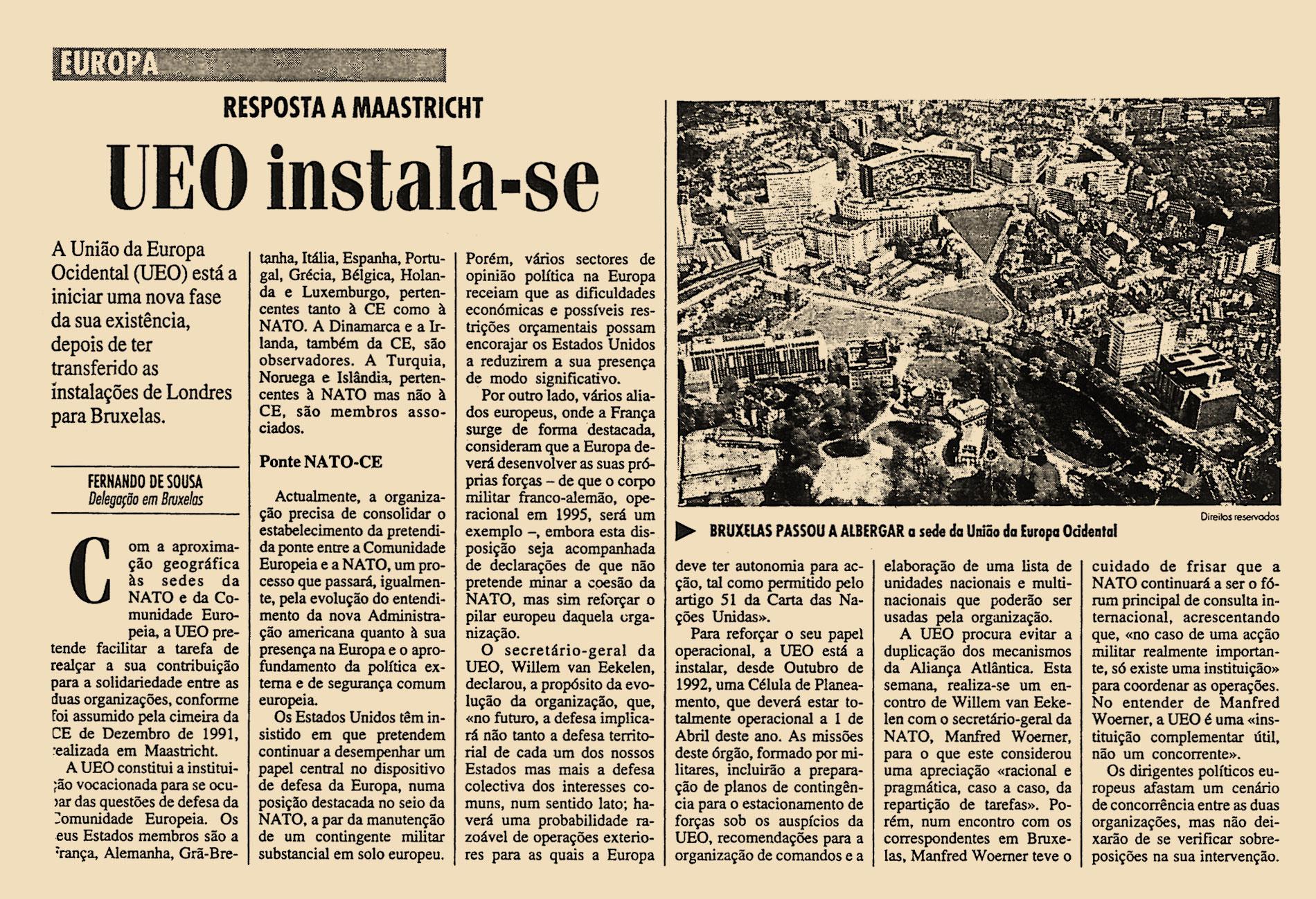 A União da Europa Ocidental (UEO) está a iniciar uma nova fase da sua exitência, depois de ter transferido as instalações de Londres para Bruxelas.