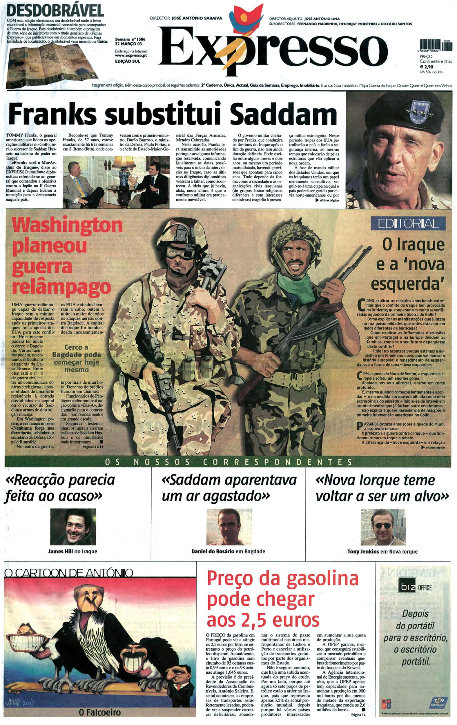 O Expresso acompanhou em toda a linha a “guerra-relâmpago”, com os correspondentes James Hill no Iraque, Daniel do Rosário em Bagdade, Tony Jenkins em Nova Iorque e Ed O’Loughlin na Jordânia.