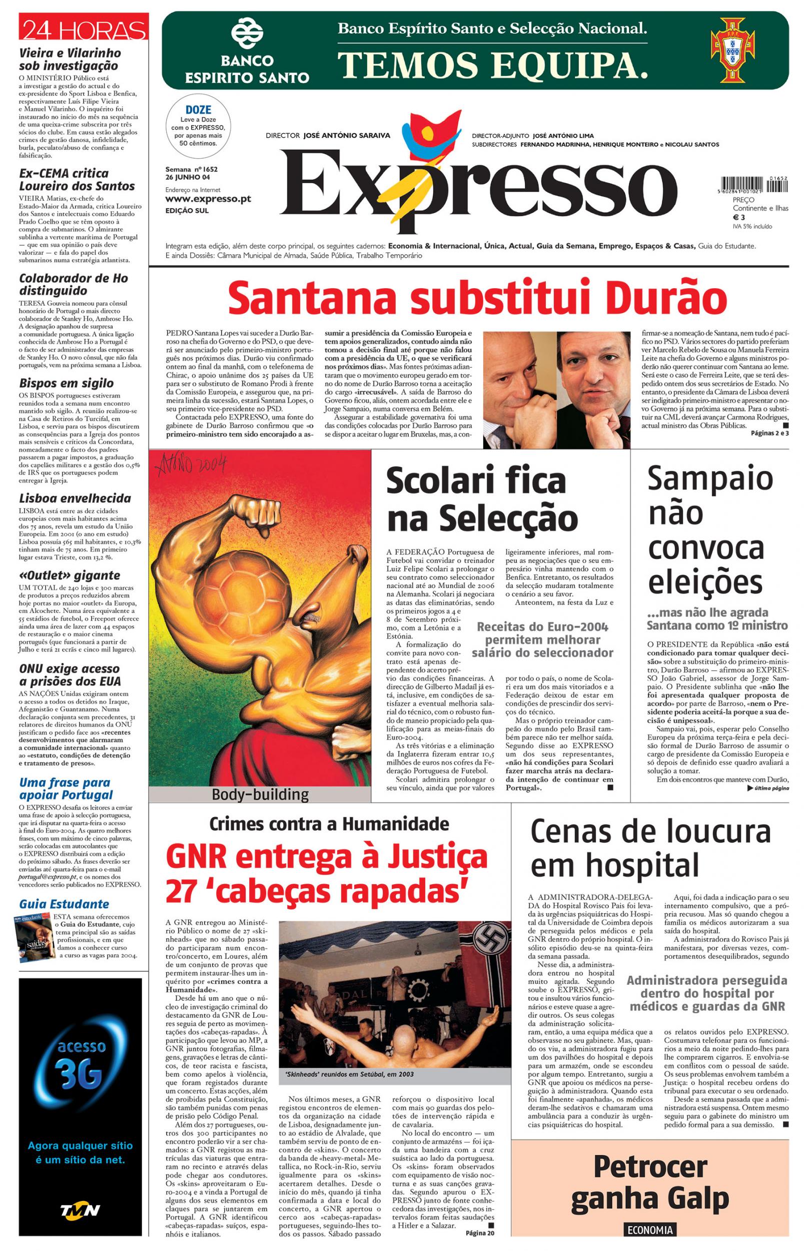 Pedro Santana Lopes dominou a paisagem noticiosa de 2004. No início do ano, ainda como presidente da Câmara Municipal de Lisboa, continuava a sonhar alto e dizia ao Expresso que ia convidar o arquiteto brasileiro Oscar Niemeyer para projetar a nova catedral da cidade. Fomos nós a dar a notícia a Niemeyer, que não sabia de nada.